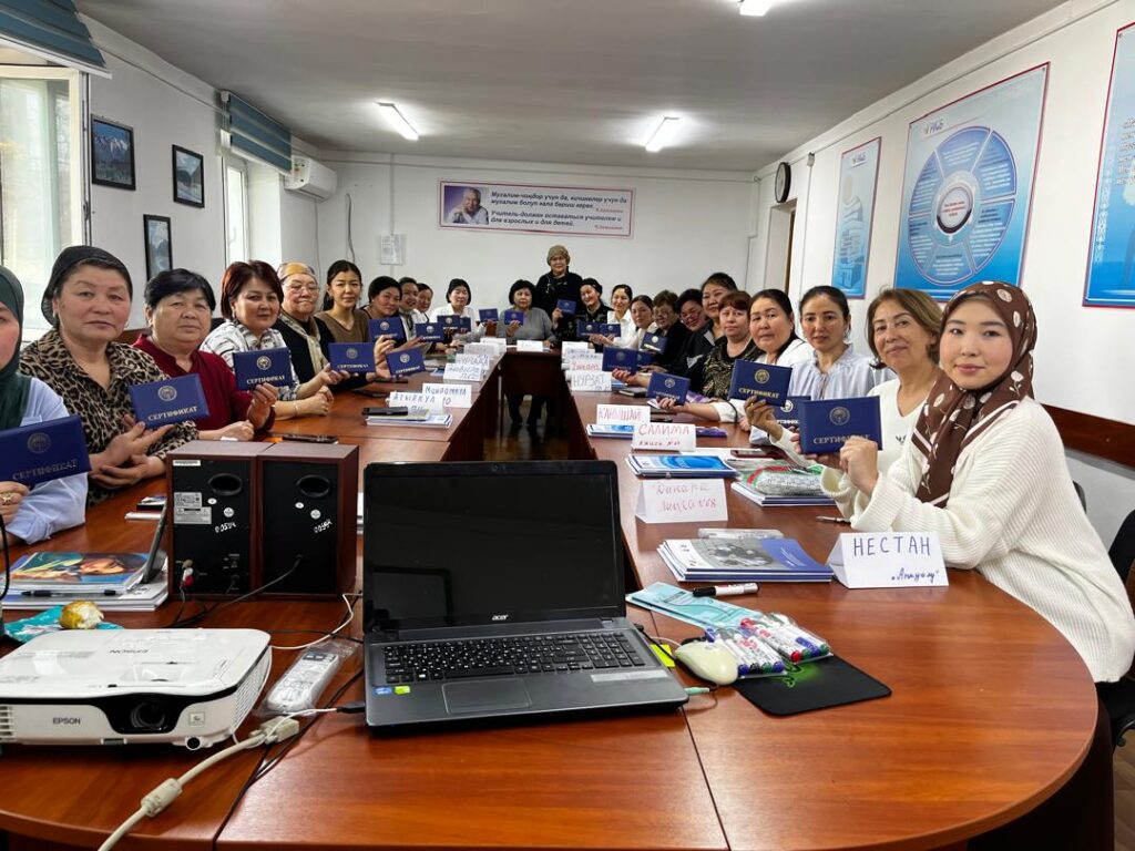 По завершению курса повышения квалификации сертификаты вручены начальником Управления профессионального образования Министерства просвещения КР Кусеиновой Анарой Сүйүндуковной.